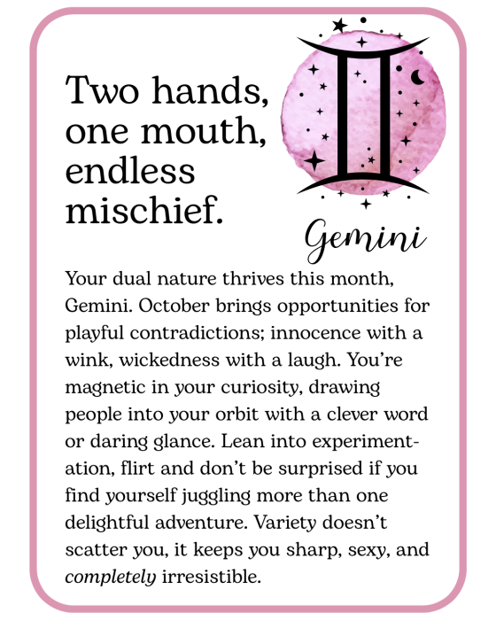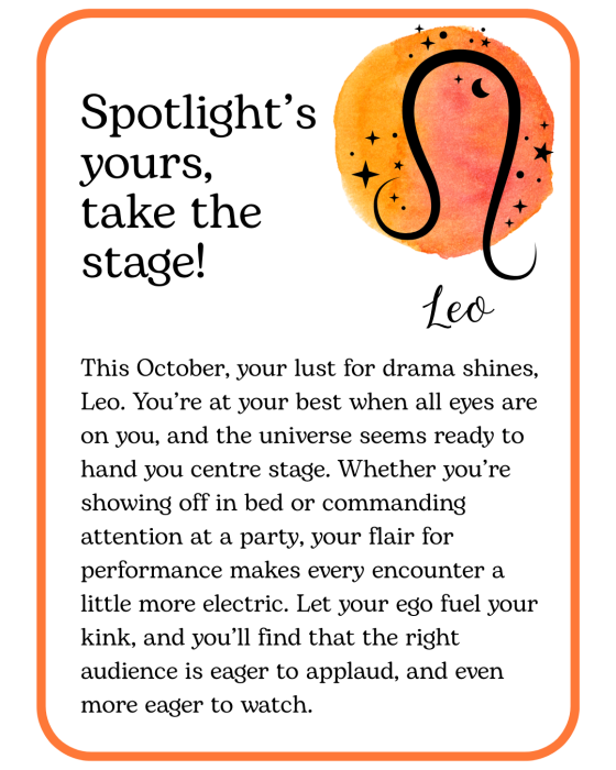 October’s Kinky Horoscopes foretell bold, sexy moves, and plenty of fun!